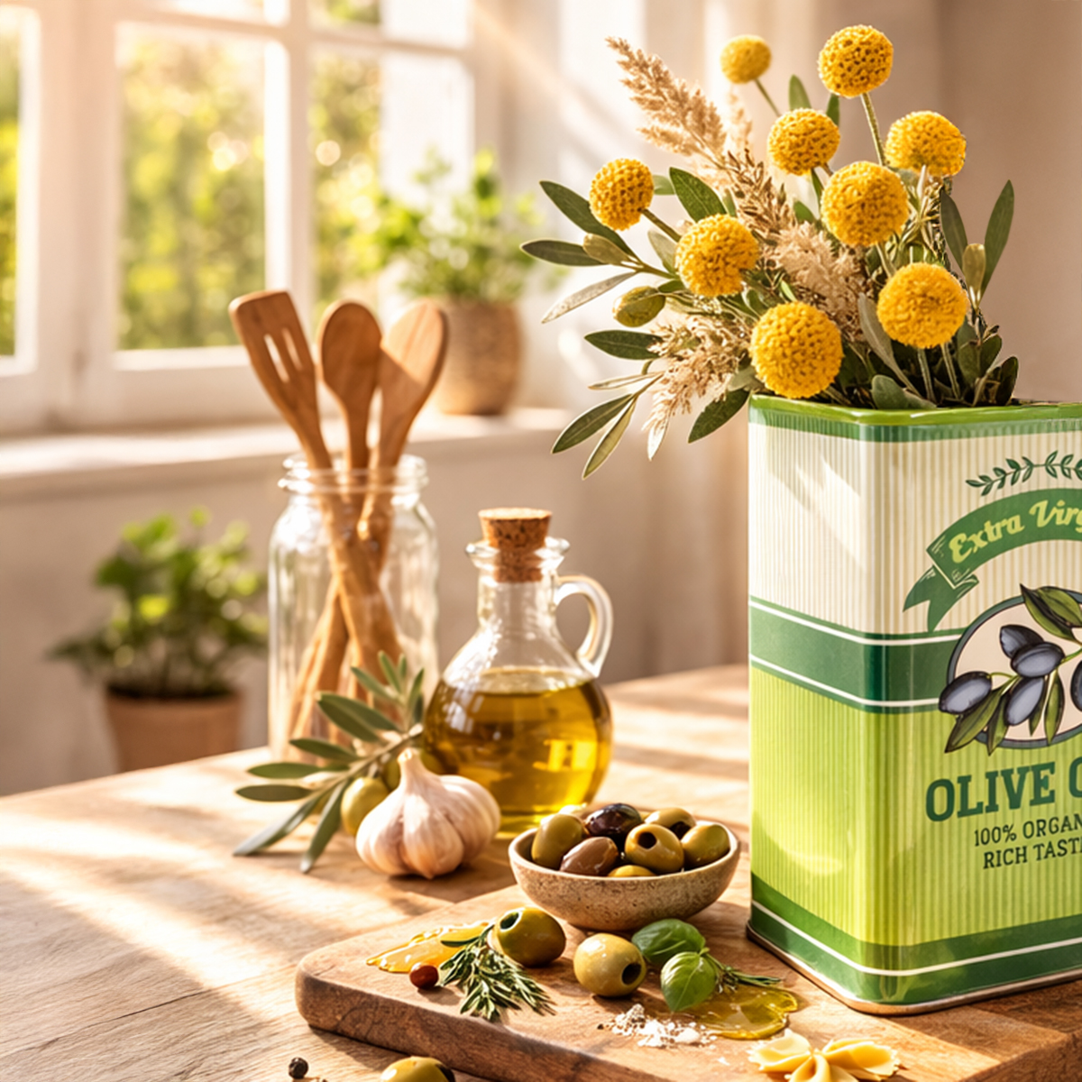 Jarrón de cerámica con diseño de aceite de oliva: decoración de cocina mediterránea con estilo
