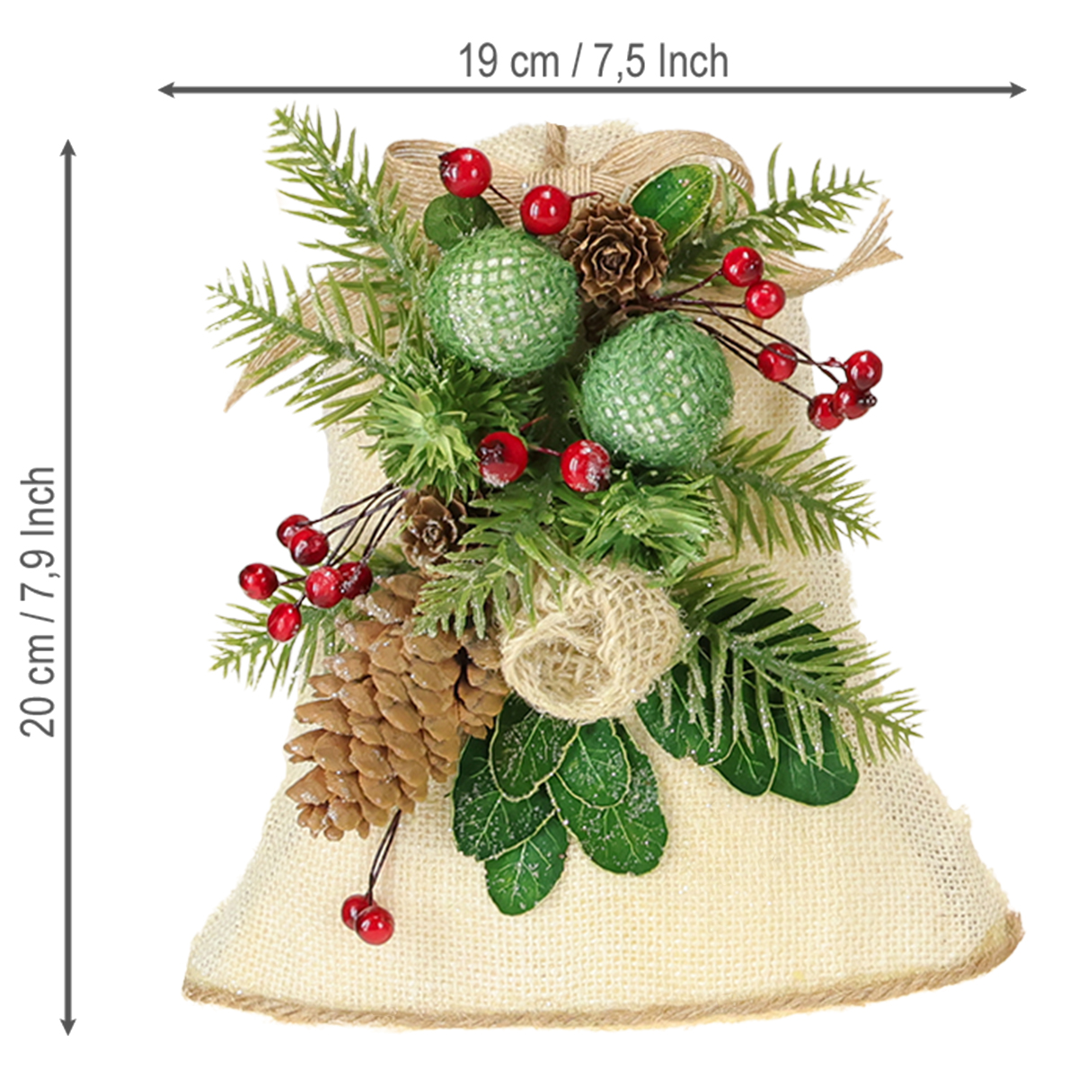 Nombre del producto: Adorno navideño de pared, campana, yute, surtido, 20 cm de alto, 2 unidades
