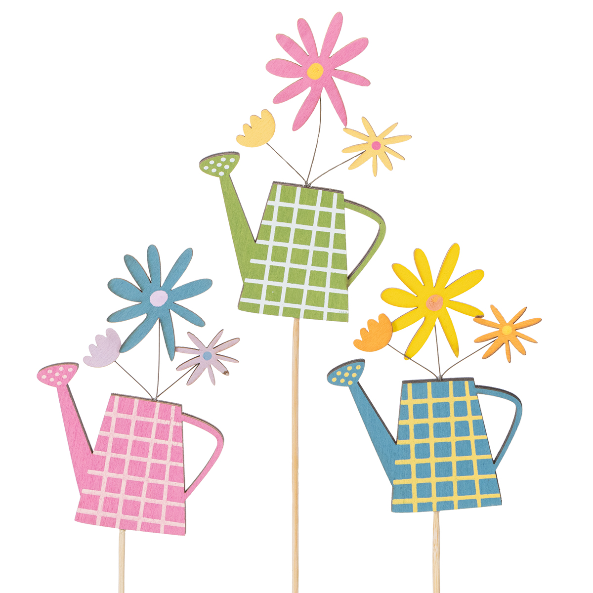 Estas estacas para regaderas impresionan por su meticuloso diseño floral de madera, que, gracias a la armonía de los colores rosa, verde y azul, resulta especialmente delicado y alegre. Con una altura total de 34,5 cm y un diámetro de 7 cm, se integran a la perfección en cualquier arreglo floral, aportando un toque de estilo. Ya sea en un romántico estilo rural o como un complemento divertido para una decoración moderna, estas estacas de jardín son versátiles y sin duda llamarán la atención.