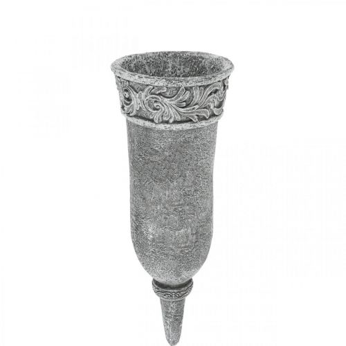 Los jarrones de cementerio como estos se pueden insertar fácilmente en el suelo o en la espuma floral y lijar con la espina en la parte inferior. ¡El jarrón funerario con espiga de tierra en blanco grisáceo está hecho de poliresina y por lo tanto es una decoración funeraria de calidad resistente a la intemperie! ¡De esta manera, las decoraciones de las tumbas también pueden presentar con gracia un pequeño ramo funerario en el Día de Todos los Santos o el Domingo de Muertos!
