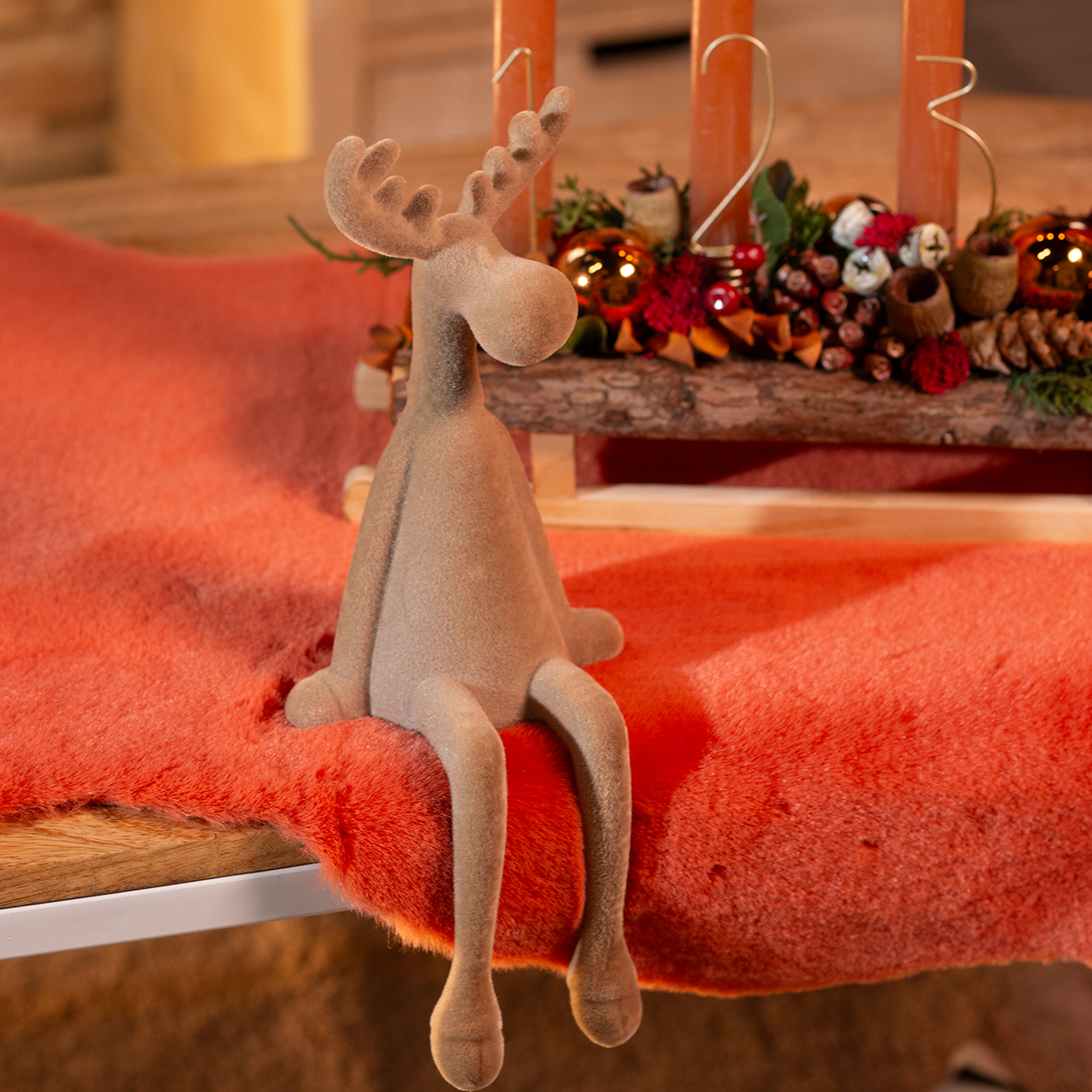 Alce borde flocado sentado marrón 31cm 3 piezas
