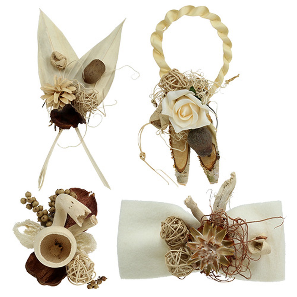 Materiales: Materiales naturales (p. ej. musgo, ramitas, cortezas, conos), plástico (p. ej. PE, PVC), textiles, metal, cerámica y vidrio.
