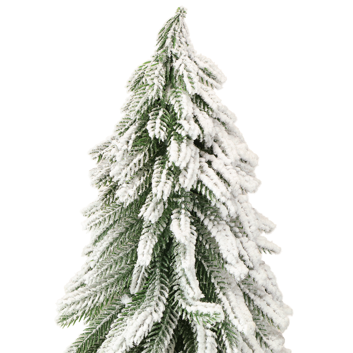 Árbol de Navidad decorativo cubierto de nieve con aspecto natural.
