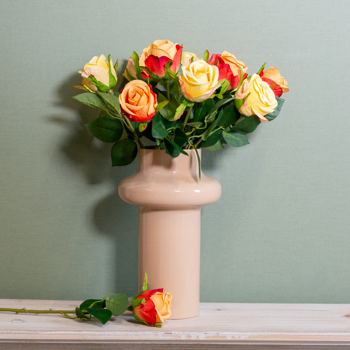 ¿Quién no ha experimentado esto? Una sala de estar decorada con estilo, un ambiente acogedor en la mesa del comedor o un ambiente elegante en la oficina, todo con un toque de naturalidad. Pero las flores naturales se marchitan rápidamente y su cuidado puede llevar mucho tiempo. Con nuestro arreglo de rosas en amarillo radiante, aportará la combinación perfecta de longevidad y belleza a su hogar. Ya sea como detalle en la mesa del comedor o como detalle destacado en la cómoda, estas flores artificiales decorativas alegrarán cualquier estancia. ¿Busca algo fácil de mantener, de alta calidad y con estilo? ¡Entonces este ramo de rosas artificiales es la elección perfecta!