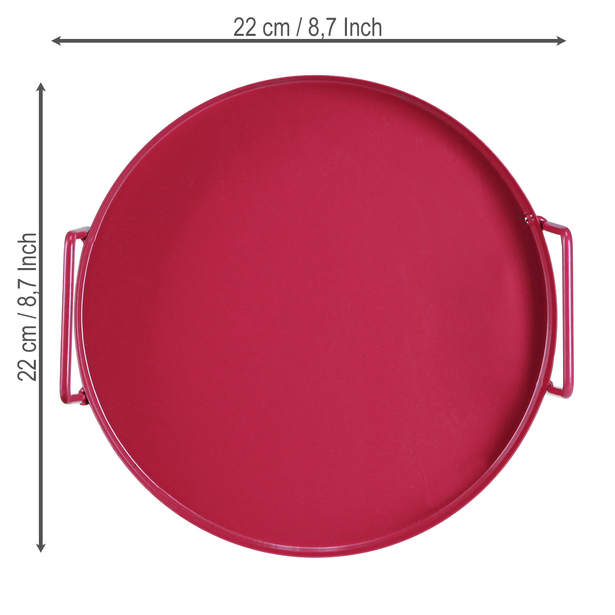 Esta bandeja redonda de metal en un vibrante rojo, con un diámetro de 22 cm, no solo es un verdadero punto de atracción, sino también excepcionalmente funcional. Las asas mate garantizan un agarre seguro y la hacen práctica y práctica. Ya sea que desee servir bebidas y aperitivos con estilo a sus invitados o exhibir sus plantas favoritas, esta bandeja roja siempre causa una gran impresión. Su robusta superficie metálica es fácil de limpiar y ofrece una durabilidad impresionante: un compañero confiable en cualquier situación.