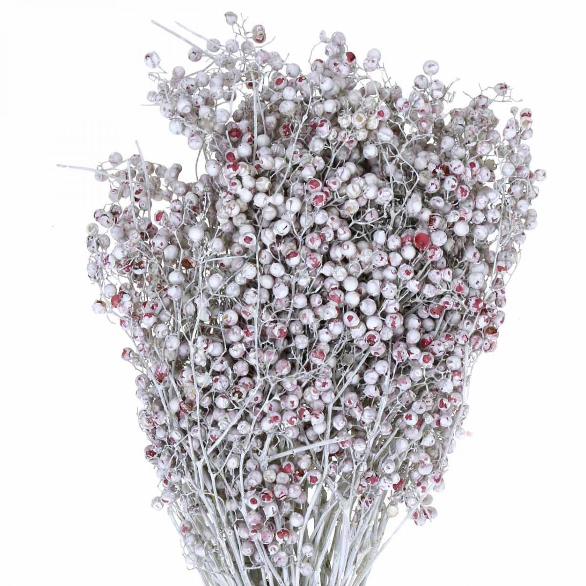 Bayas de pimiento nevado, decoración de invierno, flores secas, Adviento, pimienta rosa blanca lavada 170g