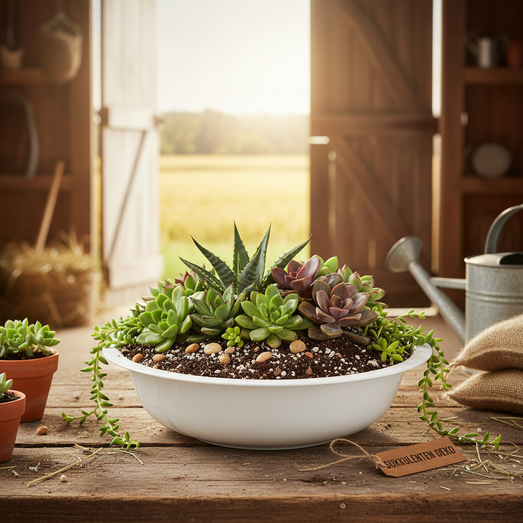 El cuenco decorativo no sólo es adecuado para plantar (lo mejor es cubrir el cuenco de flores con papel de aluminio), sino también para arreglos de mesa a los que se quiera dar un toque ligeramente rústico.
