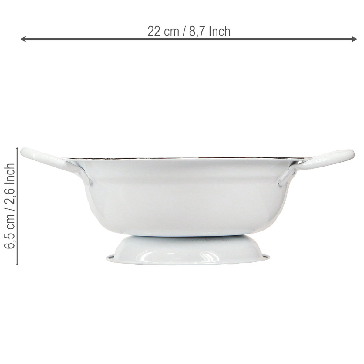 Con su atractivo aspecto de esmalte blanco y su elegante borde negro, estos cuencos de metal ofrecen una variedad de opciones de decoración. Son ideales para los amantes del estilo escandinavo, pero también como elemento de contraste en un ambiente industrial. En Floristik24 encontrarás accesorios para el hogar a juego, como candelabros o maceteros, que complementan la elegante simplicidad de estos cuencos.