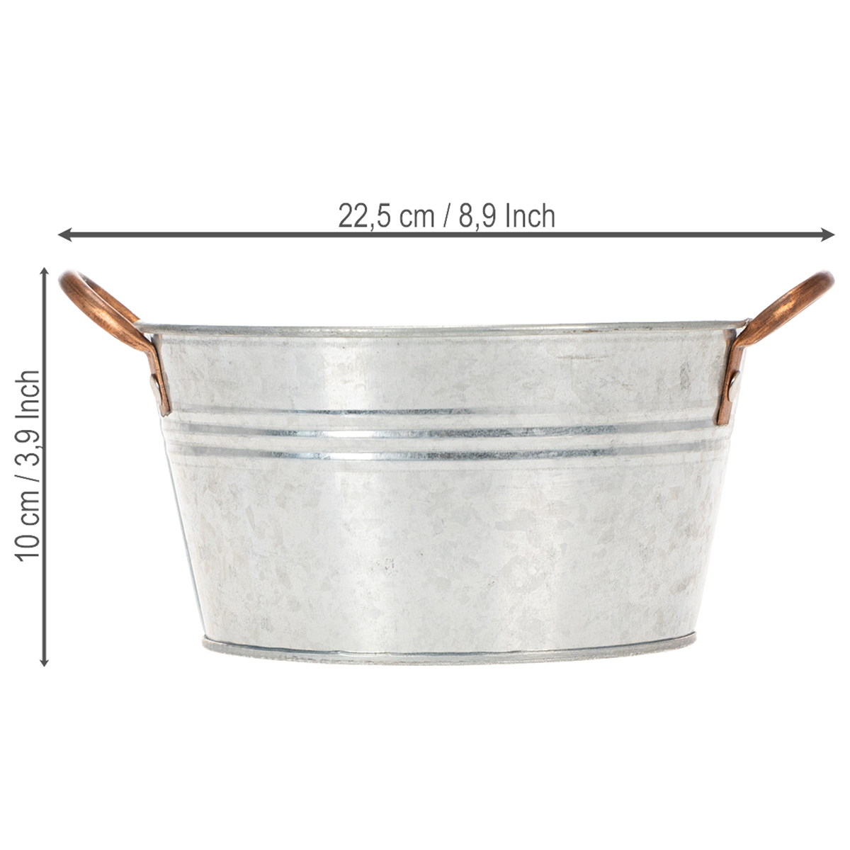 ¿Le gustaría plantar hermosos contenedores para la primavera? Entonces enriquece tu decoración con este elegante y práctico florero redondo con asas. El recipiente de metal con galvanizado plateado y asas decorativas en color cobre complementa con su diseño único cualquier decoración interior y será un verdadero punto de atracción en su casa o jardín.