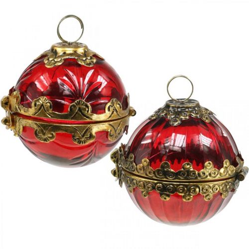 Bola de Navidad vintage para abrir vidrio rojo dorado Ø8cm juego de 2