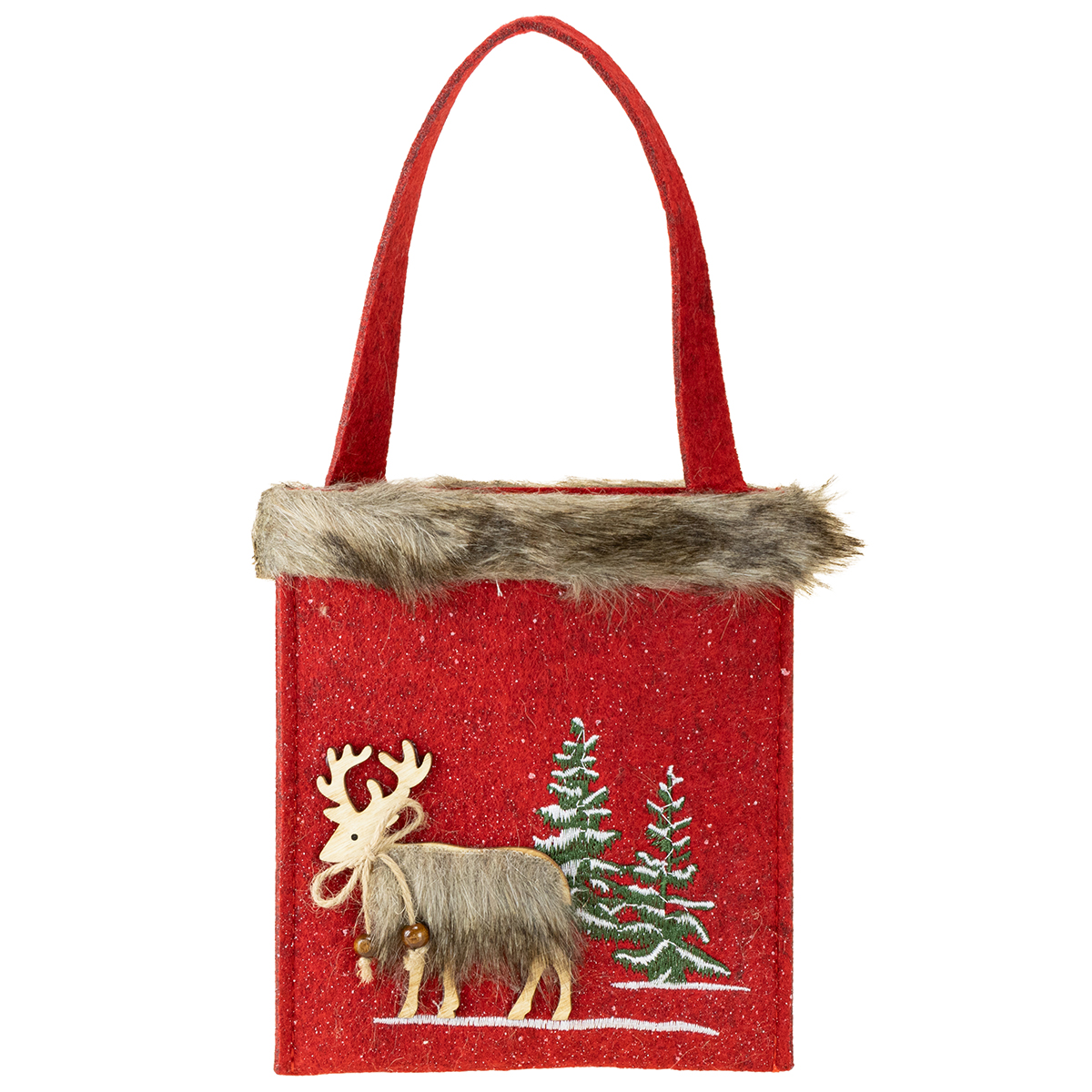 Bolsa navideña roja con pelo 15,5cm x 18cm 3uds