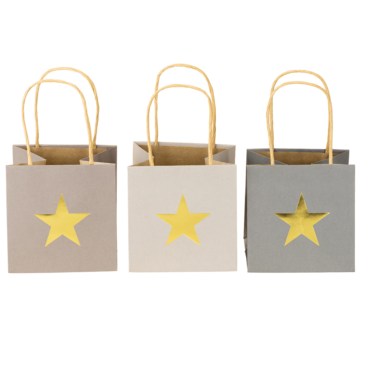 Bolsas de papel con estrella y asa gris surtido 10,5×10,5cm 9ud