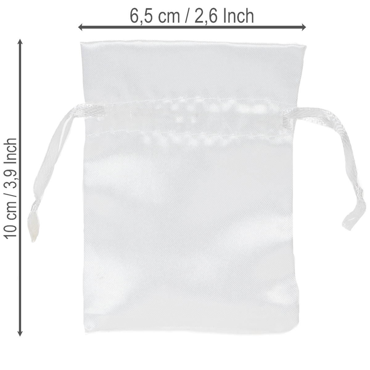 Bolsas de regalo, bolsitas de satén, blancas, 6,5 x 10 cm, 10 unidades