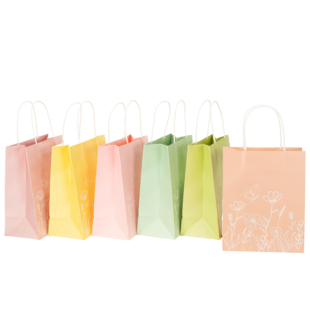 El diseño floral, sutilmente estampado en las bolsas, es especialmente llamativo. Les aporta un toque de elegancia y frescura, perfecto para festivales de primavera, cumpleaños de verano o ocasiones románticas. Quienes valoran la sostenibilidad también quedarán impresionados: las bolsas están hechas de papel, lo que las convierte en una alternativa ecológica a los envases de plástico. Sus prácticas asas facilitan su uso y garantizan un transporte elegante de la sorpresa.