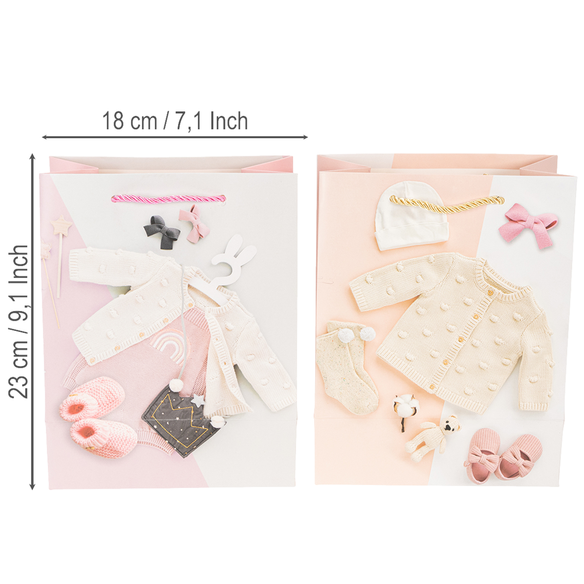 Bolsas de regalo para bebés niñas, bolsas de regalo de nacimiento, 23×18cm, 2 unidades