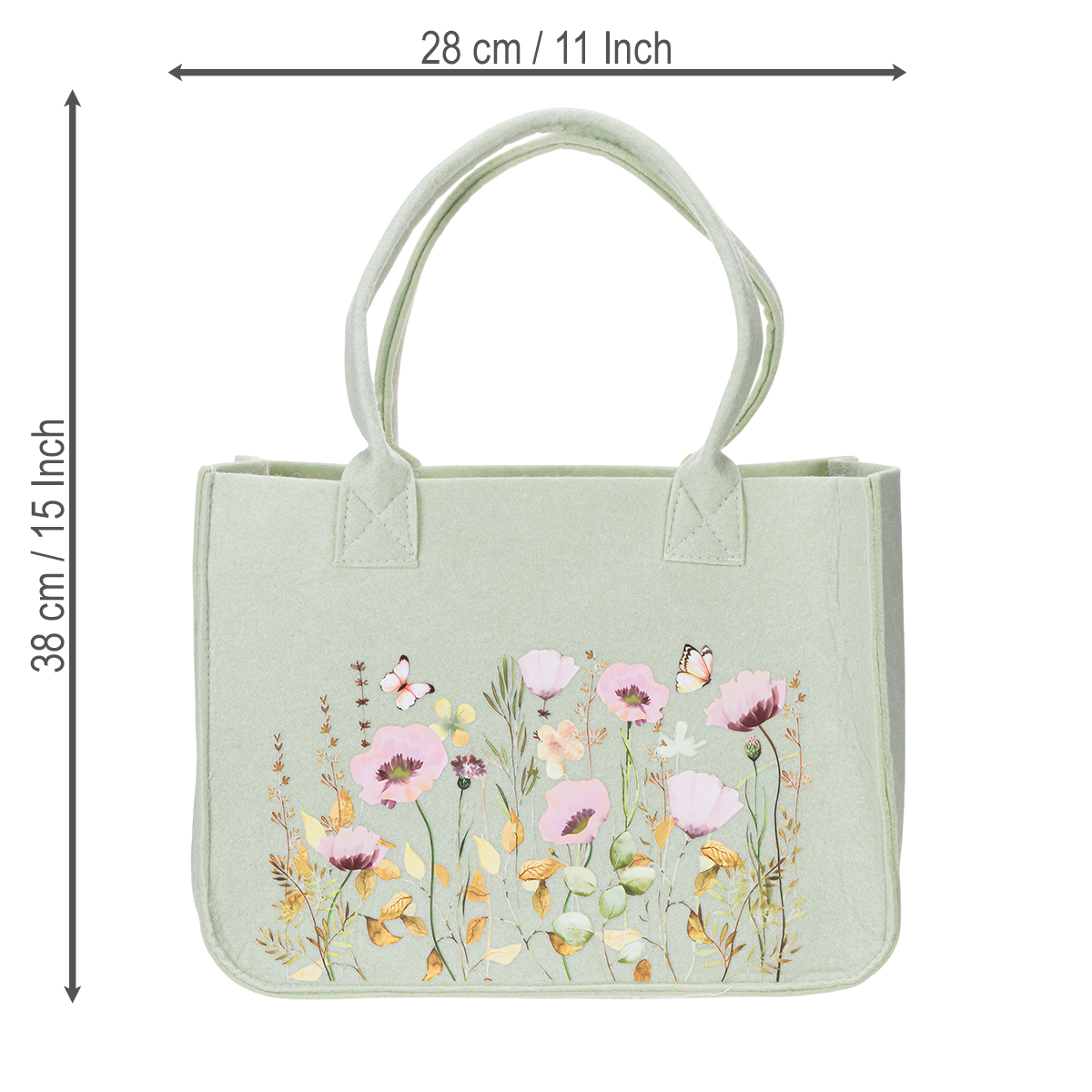 Hecho de fieltro resistente en un elegante color verde, este bolso aporta un toque natural y rebosa encanto veraniego. El delicado estampado floral en la parte frontal le da un aspecto único que evoca los prados florecientes de verano. Ya sea para tus recados diarios, como un elegante compañero en la oficina o incluso como un práctico bolso de compras, este bolso es ideal para casi cualquier ocasión. ¿Y lo mejor? Ofrece suficiente espacio para todo lo que necesitas para el día a día o para tus salidas.