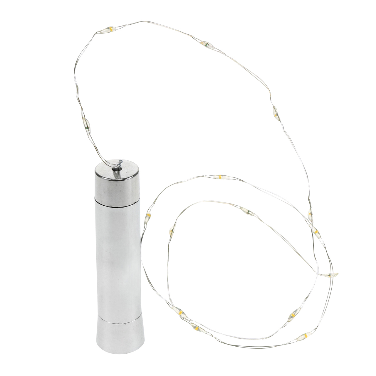 La botella de luz LED en blanco cálido tiene una longitud total de aproximadamente 82 centímetros con la tapa. Un total de 15 pequeños LED se asientan en la cadena de luces de aproximadamente 73 centímetros de largo. La tapa plateada tiene un diámetro de unos 2 centímetros en la parte superior y se estrecha ligeramente hacia la parte inferior para que encaje en el cuello de una botella de vino, por ejemplo. También necesita una batería AA para las luces de la botella.