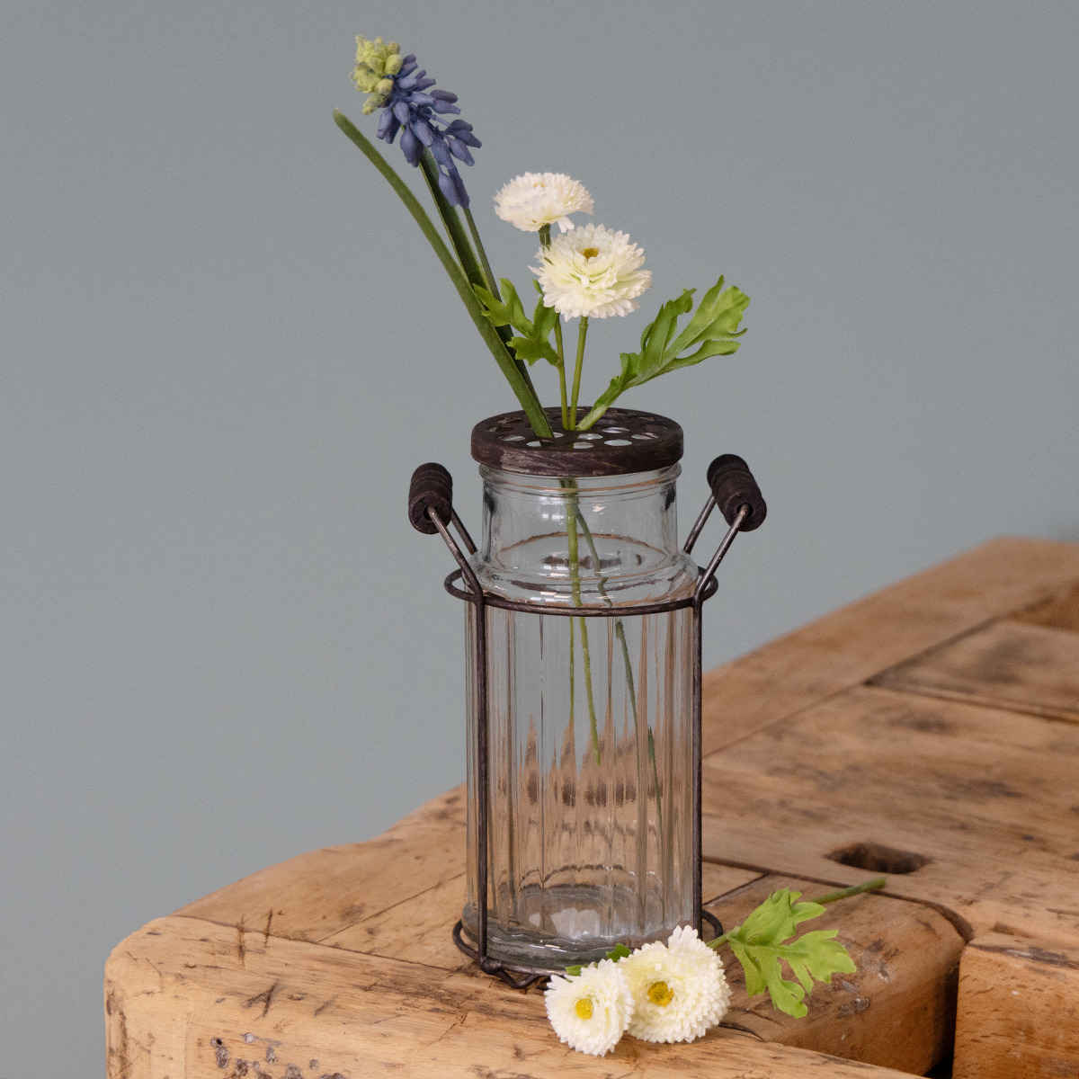 ¿Buscas una pieza decorativa atemporal? Esta botella de vidrio con cesta metálica no solo es funcional, sino también un verdadero punto de atracción. Con su superficie transparente y su rústico soporte metálico, desprende un encantador toque vintage que se integra a la perfección en casi cualquier decoración. Ya sea en la mesa del salón, en la cocina o como un jarrón creativo, ¡esta pieza sin duda llamará la atención! ¿Y sabes qué es aún mejor? Los agujeros en la tapa te invitan a exhibir flores individuales con estilo. En un abrir y cerrar de ojos, tendrás una pequeña obra de arte.