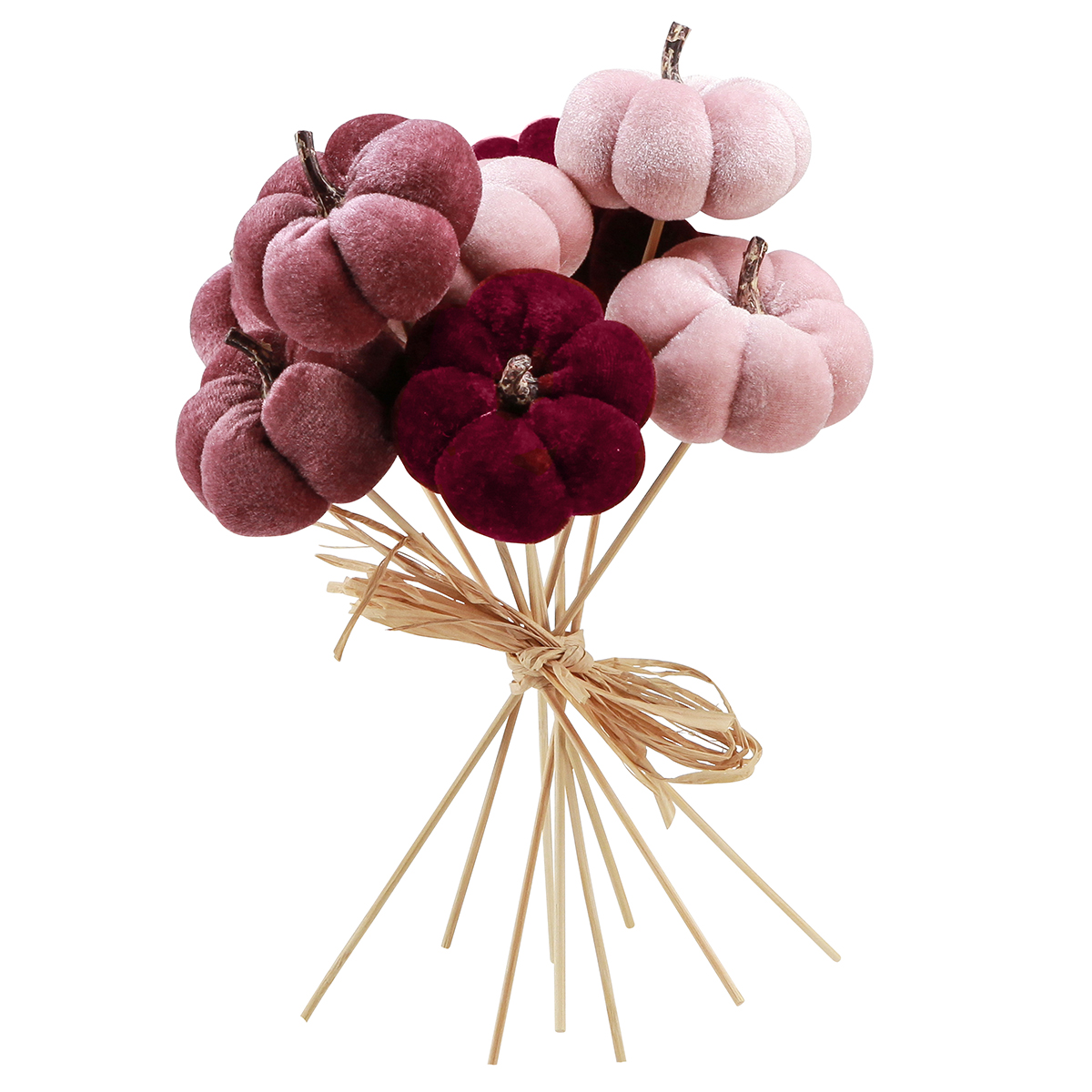 Nombre del producto: Calabaza decorativa de tela calabaza en palo rosa burdeos Ø7cm 9 piezas