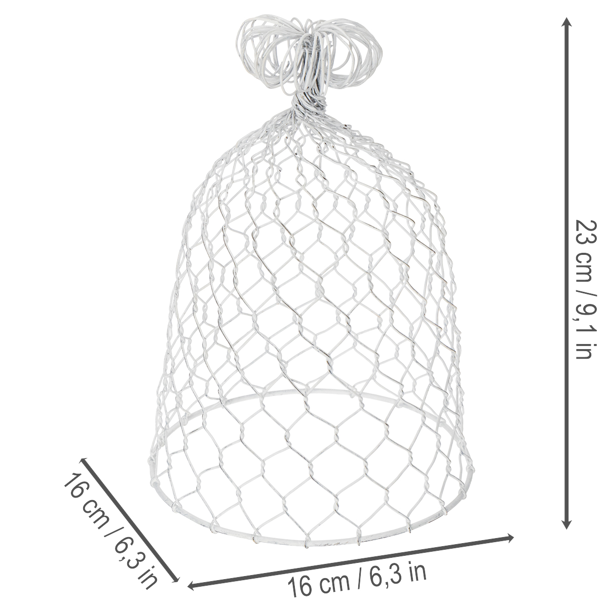 ¿Buscas un toque encantador para tu mesa de estilo rústico? ¡Nuestra campana de alambre blanca es la elección perfecta! Combina el encanto rústico con un toque shabby chic y será el centro de atención en cualquier ocasión. Ya sea como pieza central de tu mesa festiva, como elegante cubierta para pequeños objetos decorativos o como un elemento acogedor en la decoración de tu habitación, esta campana de alambre impresiona por su versatilidad y estilo.