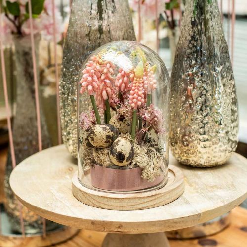 ¡Una campana decorativa no debe faltar en ningún repertorio para decorar! La hermosa cúpula de vidrio con una placa de madera es perfecta como decoración de mesa llena de adornos florales o velas LED. Pero la cúpula de cristal también es estupenda para guardar figuras decorativas en la estantería, como escaparate de obras de arte o como original plato decorativo.Para festividades especiales como una boda, puede colocar pequeños arreglos como decoración de mesa debajo de la cúpula de cristal con una bandeja. O puede colocar un plato con pralinés debajo de la cubierta de queso de vidrio.