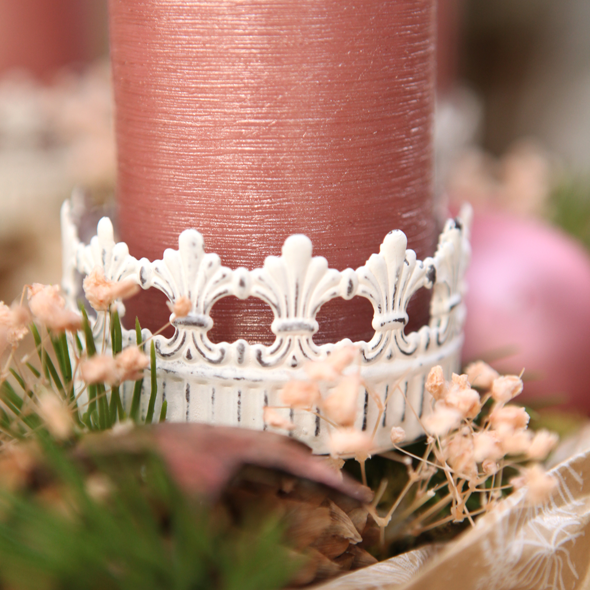 Simplemente coloca el candelabro en un arreglo floral con flores de colores pastel y ramitas con adornos de encaje para crear una joya única y nostálgica que puedes colocar en tu acogedor hogar, por ejemplo, en un aparador o en el centro de la mesa del comedor. El candelabro también es perfecto para un regalo de boda romántico o luce precioso solo con una vela gruesa y colorida.