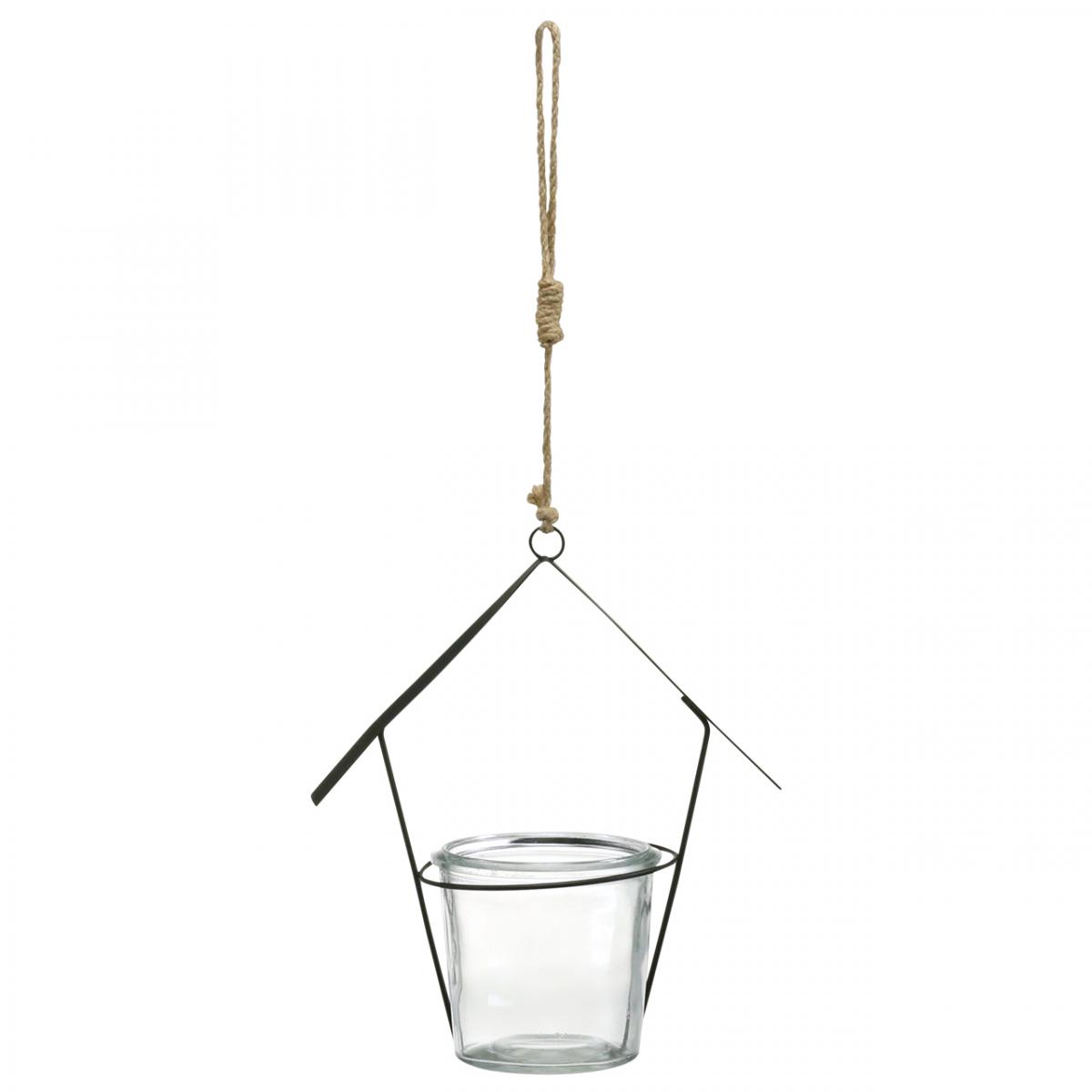 La decoración de metal en forma de una casa implícita tiene un inserto redondo para un vaso. El cristal de linterna suministrado ofrece espacio para velas de té, velas pequeñas o velas LED. - También puedes plantar la maceta de cristal de la casa de metal o utilizarla como macetero original.
