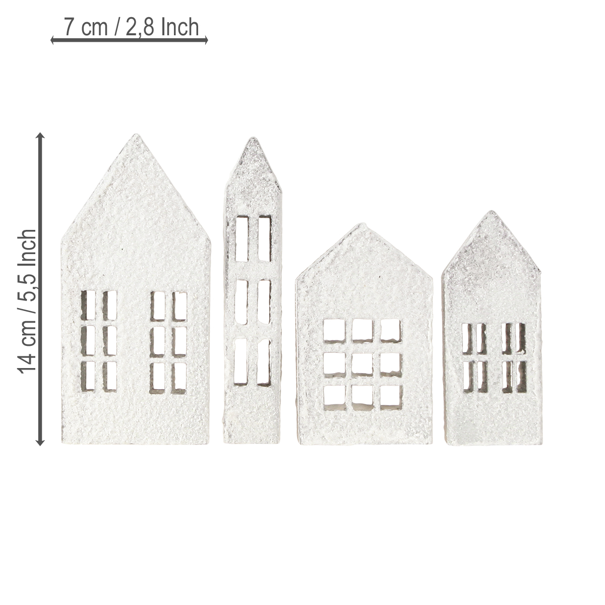 Ya sea con una decoración romántica en la mesa del comedor con velas, como un elegante punto de atracción en la estantería del salón o como un sutil complemento para la decoración del alféizar de la ventana, estas minicasas siempre crean un ambiente acogedor. Gracias al set con cuatro diseños diferentes, puedes recrear un pequeño pueblo o colocarlas en diferentes lugares para crear un ambiente armonioso. Quedan especialmente encantadoras al combinarlas con otros accesorios como guirnaldas de luces, ramas de eucalipto o sencillos jarrones de cristal. ¡Pruébalas!