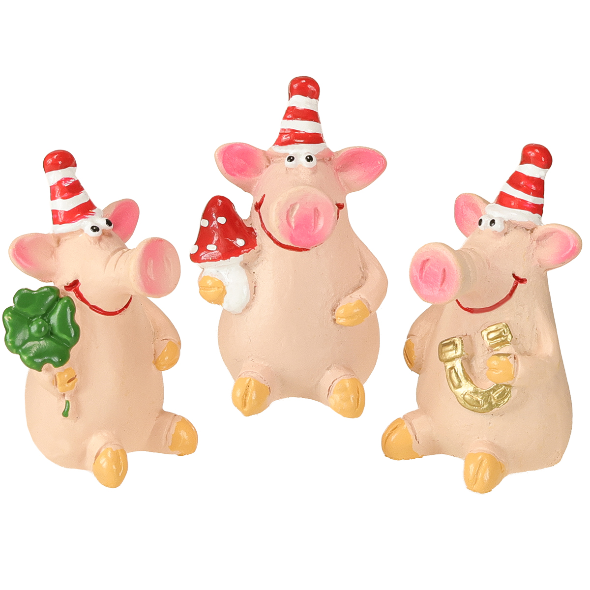 Cerdo de la suerte decorativo con amuletos de la suerte, 5 cm, 6 unidades
