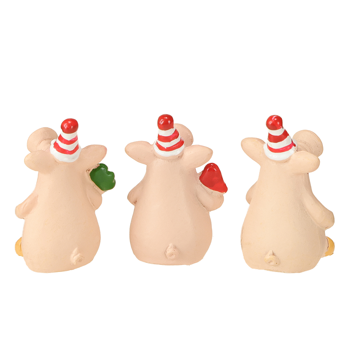Este cerdito de la suerte con amuletos cautiva a primera vista. Los cerditos en miniatura, de aproximadamente 5 cm de altura cada uno, están ricamente detallados y pintados a mano con cariño: ¡un verdadero deleite para la vista! Los cerditos decorativos, como figuras sentadas, vienen en un set de seis amuletos de la suerte diferentes. Ya sea con un trébol de cuatro hojas, una seta de la suerte o una herradura, cada cerdito luce con orgullo un amuleto tradicional diferente. Sus gorros a rayas les dan un toque festivo, ¡perfectos para una fiesta de Nochevieja! Un pequeño punto adhesivo en la base garantiza que se mantengan bien fijados y no se deslicen fácilmente. Simplemente fantásticos en combinación con otros accesorios festivos de Floristik24: ¿qué tal unos deslumbrantes candelabros o unas luces de colores vibrantes?