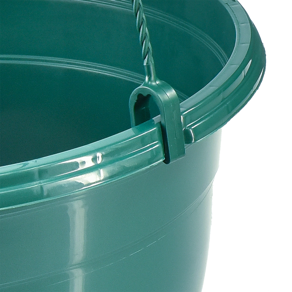 Cesta colgante en color verde con un diseño bien pensado para evitar el encharcamiento