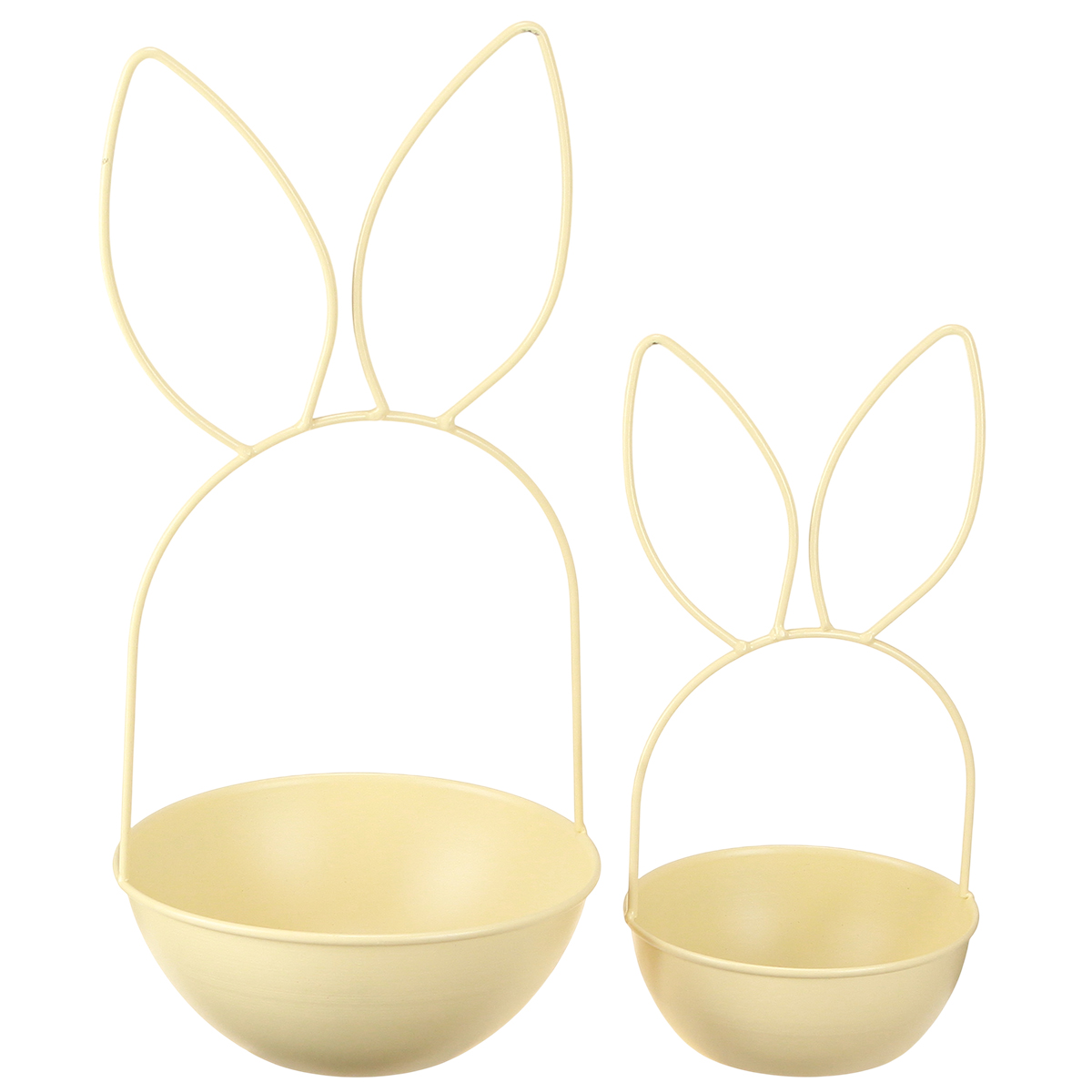 Esta cesta de Pascua en un fresco tono amarillo, elaborada en metal resistente, es una auténtica joya entre las decoraciones de Pascua. Con sus distintivas orejas de conejo, combina un diseño contemporáneo con la ligereza de la primavera. El conjunto consta de dos cestas de diferentes tamaños, perfectamente coordinadas para crear una decoración armoniosa. Las líneas suaves y limpias y el delicado diseño de las orejas convierten a estas cestas en accesorios decorativos versátiles que se integran a la perfección en diversos estilos de decoración: desde el clásico rústico hasta el minimalismo moderno.