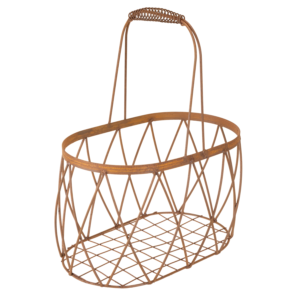 Cesta ovalada de alambre con asa, decoración de jardín, acabado oxidado, 30/25 cm, juego de 2