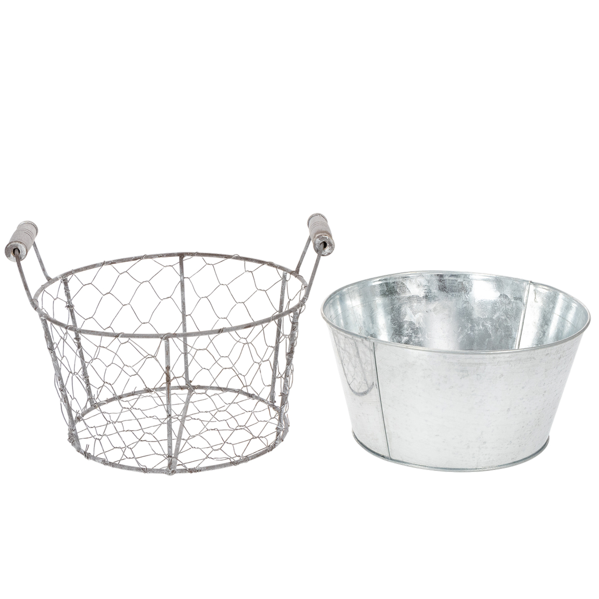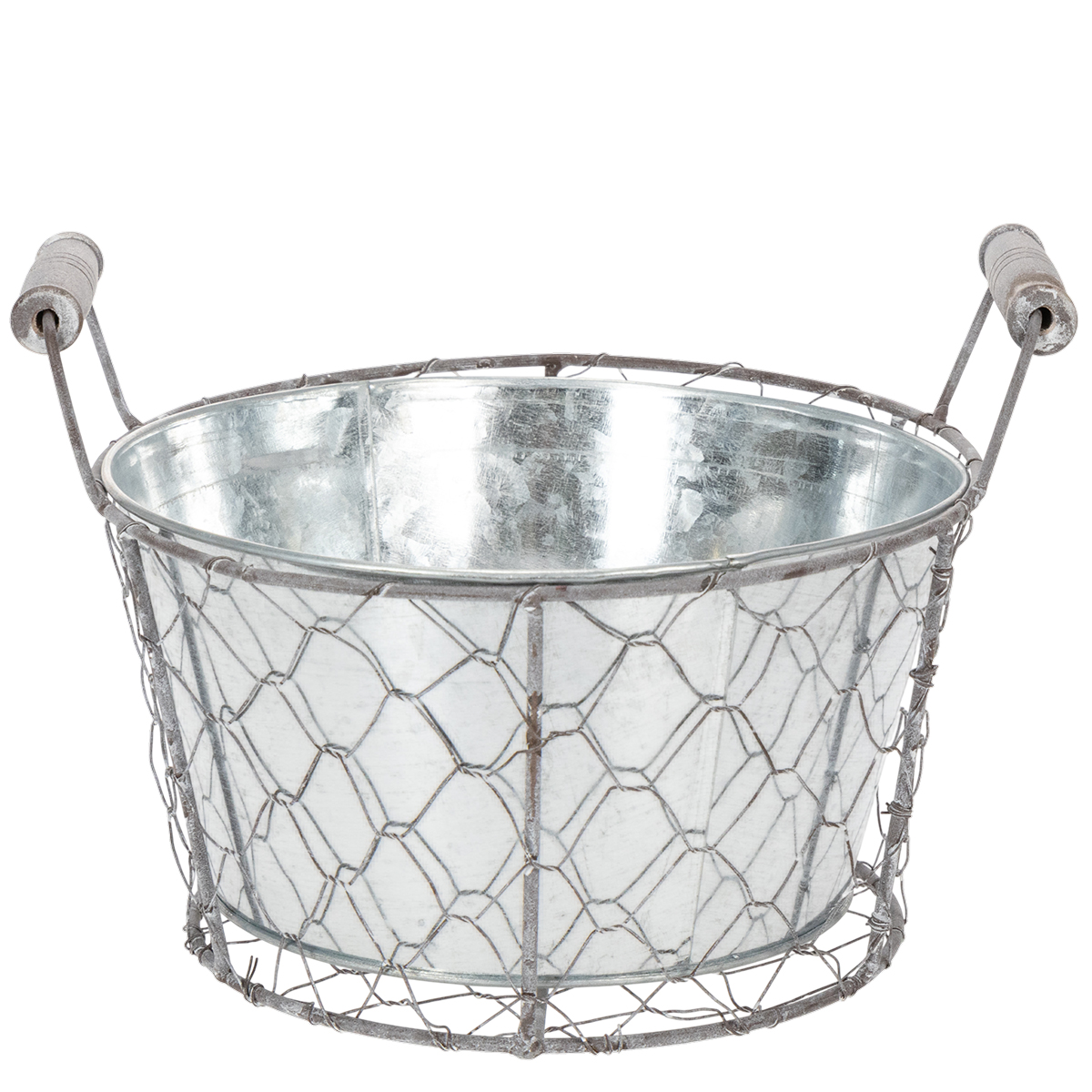 Cesta para plantas con inserto, cesta de alambre, macetero, plata primaveral, blanqueado, estilo shabby chic, Ø22cm H17.5cm