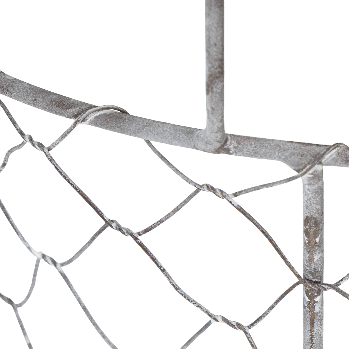 La cesta de alambre decorativa también funciona perfectamente como jardinera en interiores de estilo rústico o como decoración de metal para ocasiones festivas como una boda de estilo vintage.
