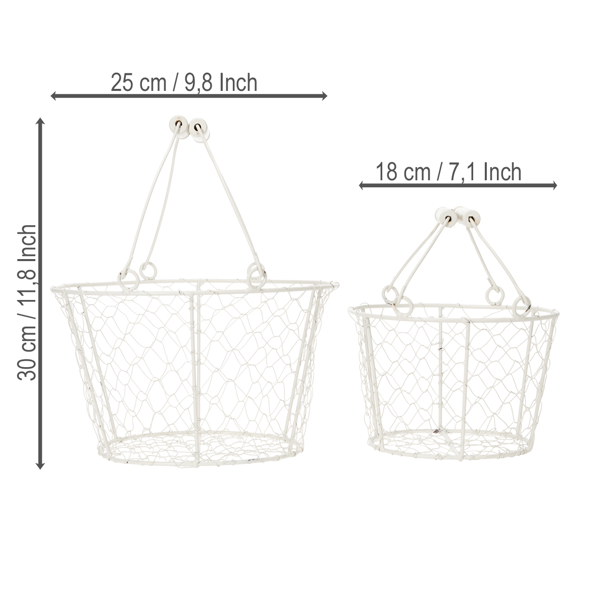 Esta cesta de alambre blanca es mucho más que un mero elemento decorativo. Con una impresionante altura de 30 cm y un diámetro de 25 cm, ofrece amplio espacio para todo lo que tu alma creativa desee. Su robusta estructura metálica garantiza estabilidad sin resultar voluminosa, y su color blanco neutro combina armoniosamente con cualquier estilo. Ya sean suculentas, fruta fresca o pequeñas luces decorativas para el jardín, las posibilidades son infinitas.