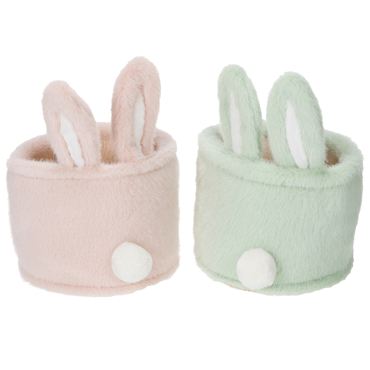 Gracias a su suave tela de felpa, estas cestas son seguras y cómodas para las manitas de los más pequeños. Sin bordes afilados, solo cálidos y alegres colores rosa y verde. Combinan a la perfección con decoraciones de Pascua como musgo, ramitas o pequeños huevos de Pascua. ¡Imagina lo encantadoras que lucirán junto a tus decoraciones primaverales con tulipanes o narcisos! A los aficionados al bricolaje también les encantarán estas cestas para darles un toque personal: con pequeños lazos o cintas de colores a juego, serán realmente llamativas.