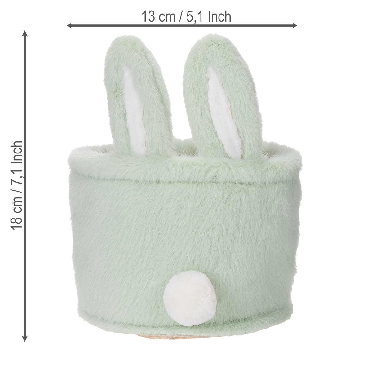 Estas cestas de almacenaje con forma de conejito impresionan no solo por su diseño, sino también por su alta calidad y su práctico tamaño. Con 18 cm de alto y 13 cm de diámetro, son compactas y discretas, pero ofrecen amplio espacio para guardar objetos pequeños. Las simpáticas orejas de conejo y el pompón esponjoso en la parte trasera las convierten en una idea decorativa original y funcional. Perfectas para hacer la habitación de un niño aún más acogedor o para añadir un toque de color de temporada al salón.