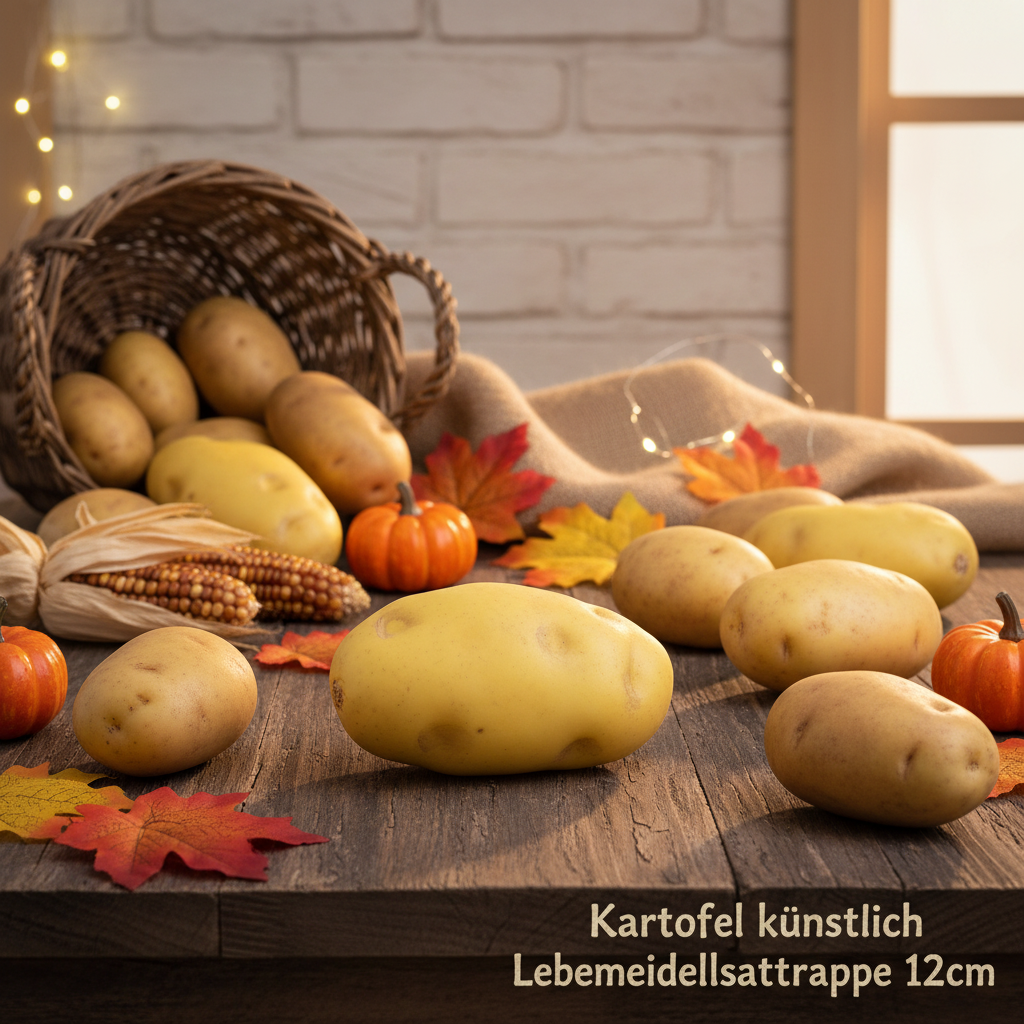La decoración perfecta para la cocina y la mesa del comedor: esta patata artificial, llamada botánicamente Solarum tuberosum, se parece engañosamente a la original. ¡Esta decoración vegetal se puede colocar fácilmente en la decoración del escaparate!
