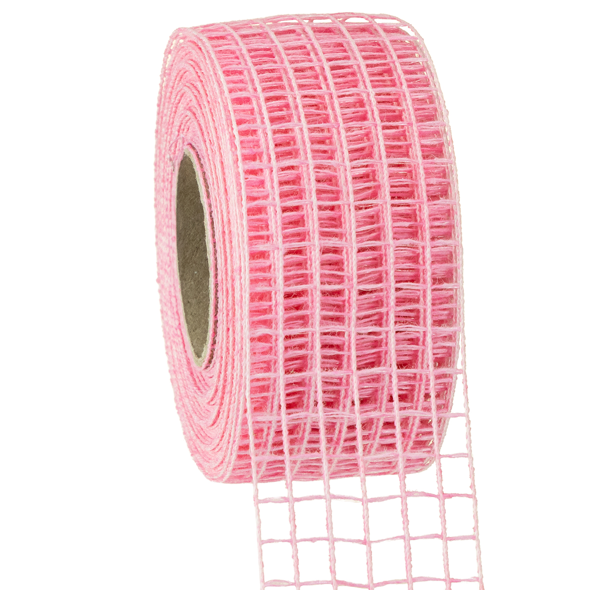 La cinta de malla en rosa se enrolla en un rollo y tiene una longitud de aproximadamente 10 metros y un ancho de aproximadamente 4,5 centímetros.