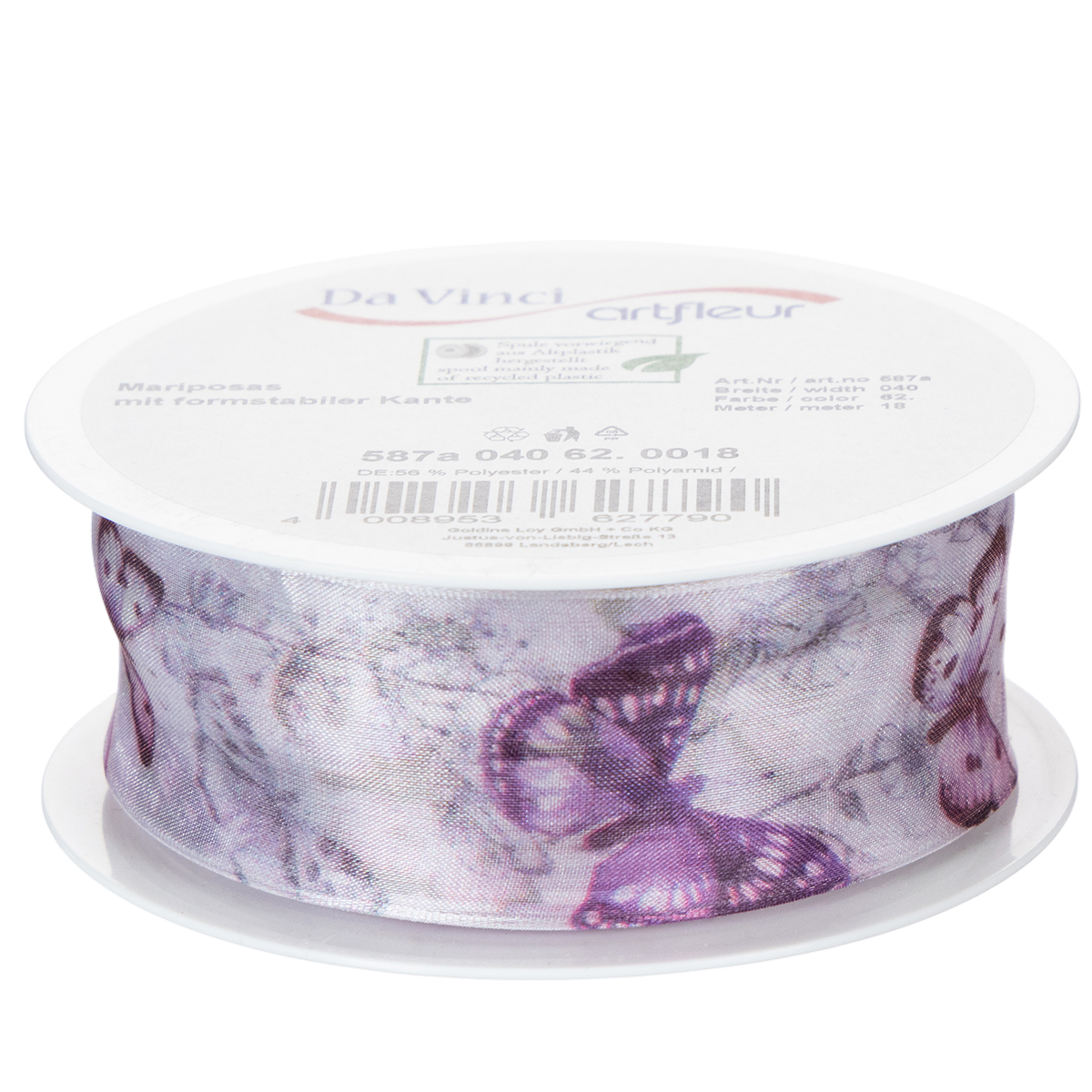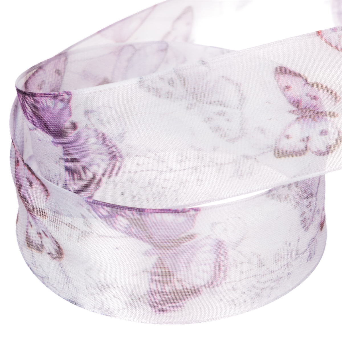 Nombre del producto: Cinta de organza, cinta de gasa, mariposas, morado, 40 mm, 18 m