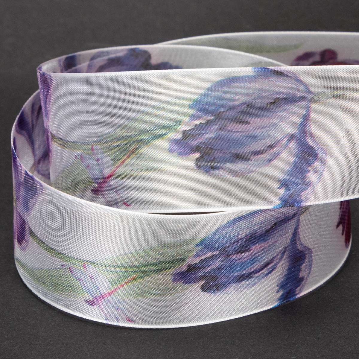 Nombre del producto: Cinta de organza, cinta de gasa, tulipanes loro, morado, 40 mm, 18 m