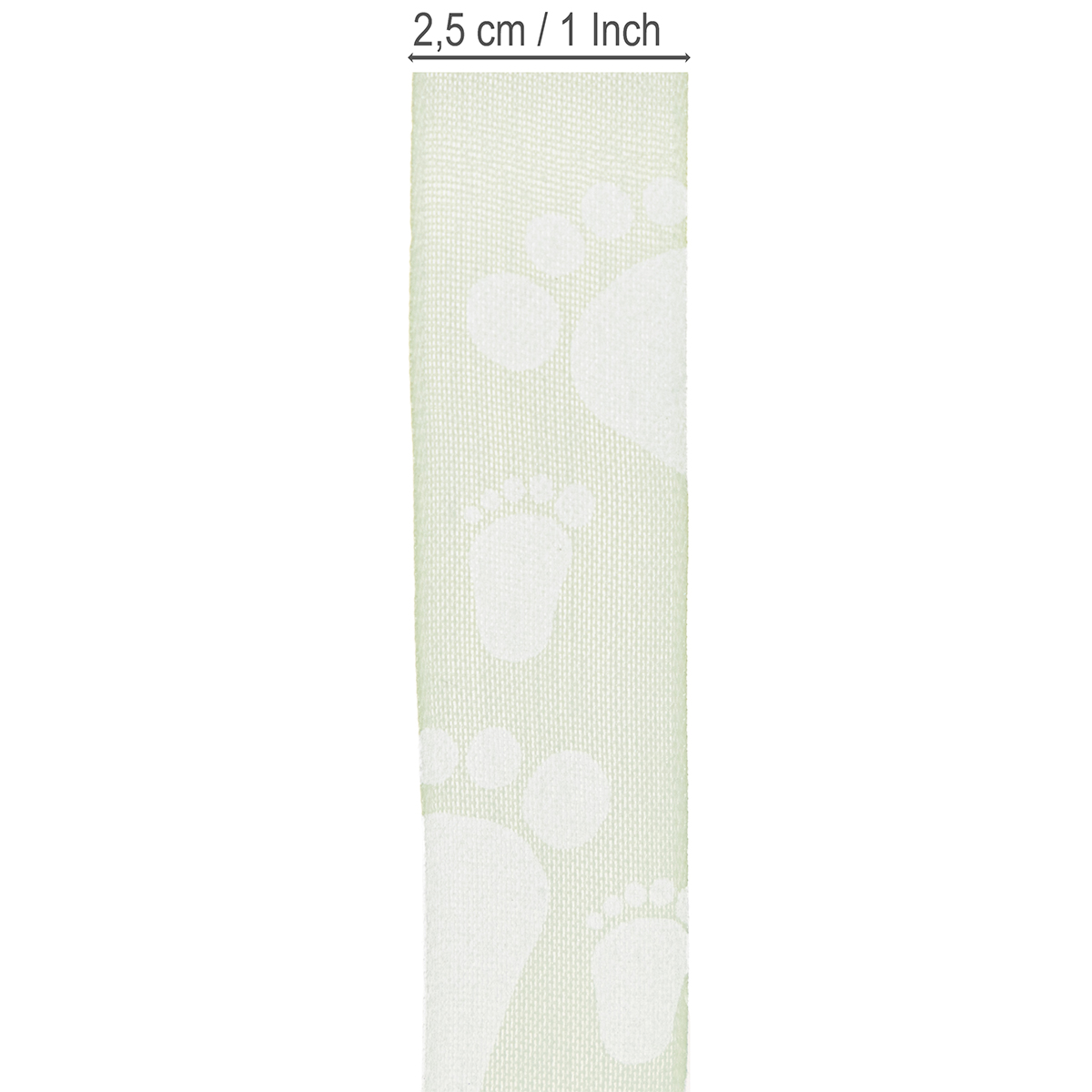 Cinta de regalo con diseño de pies de bebé para bautizo, color verde, 25 mm, 16 m
