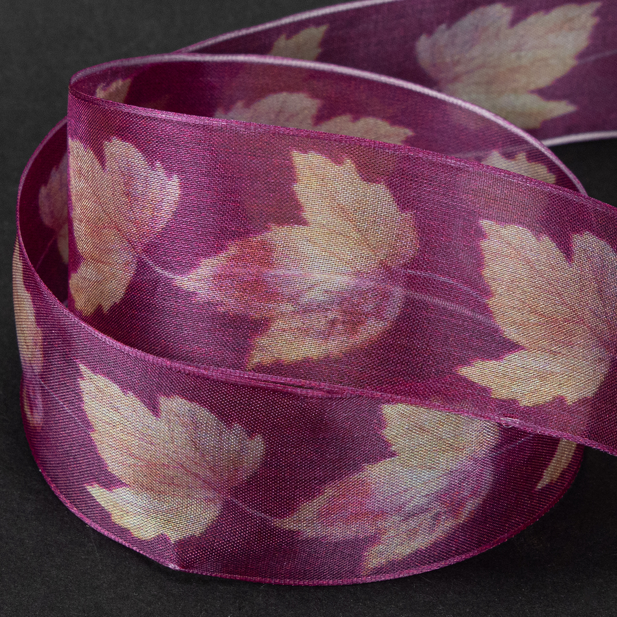 Cinta de regalo hojas de arce cinta morada otoño 40mm 15m