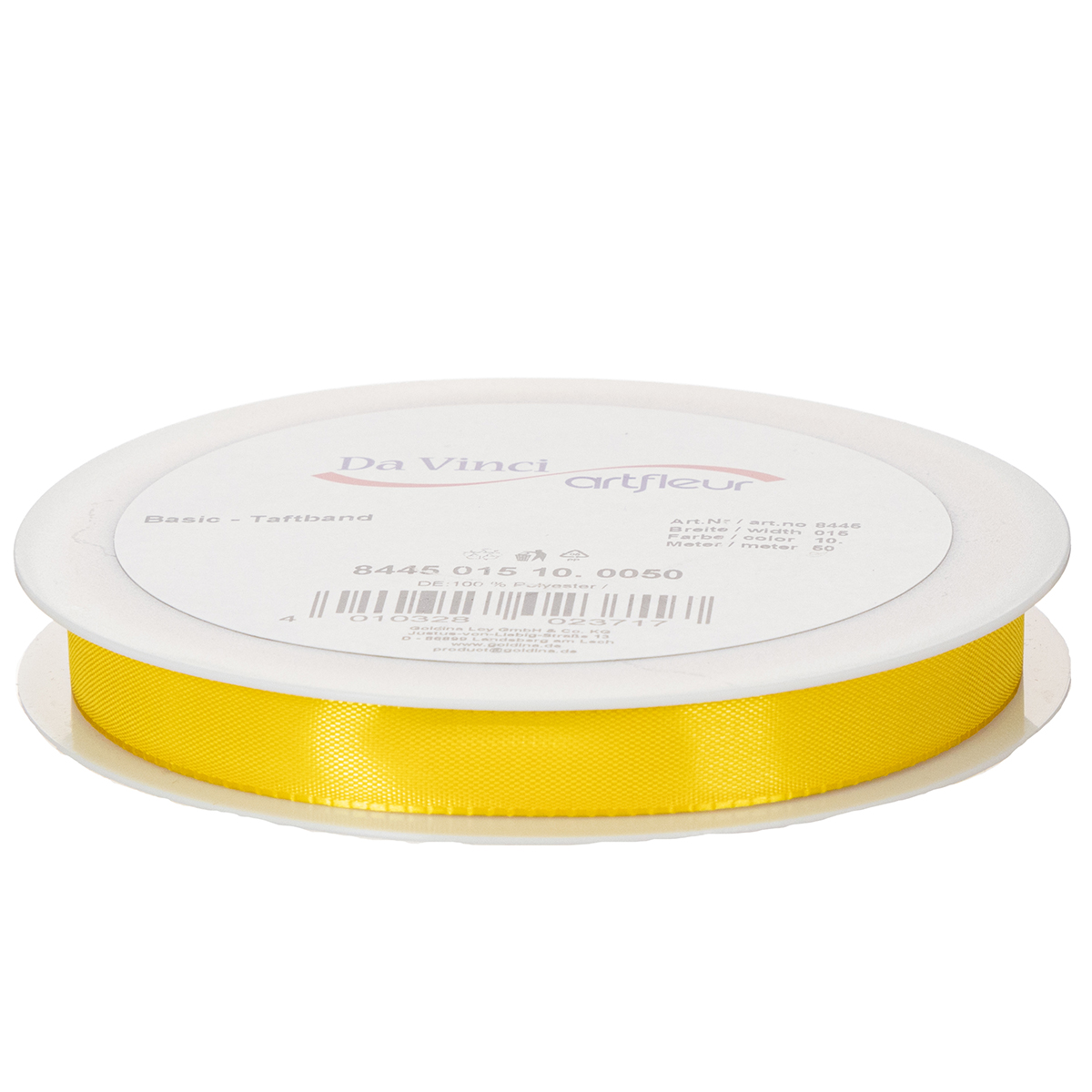 Cinta de regalo y decorativa, cinta de tafetán, 15 mm x 50 m, color amarillo