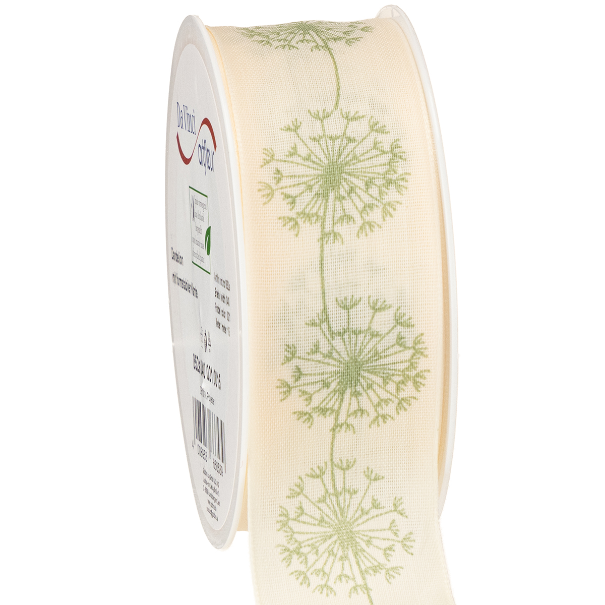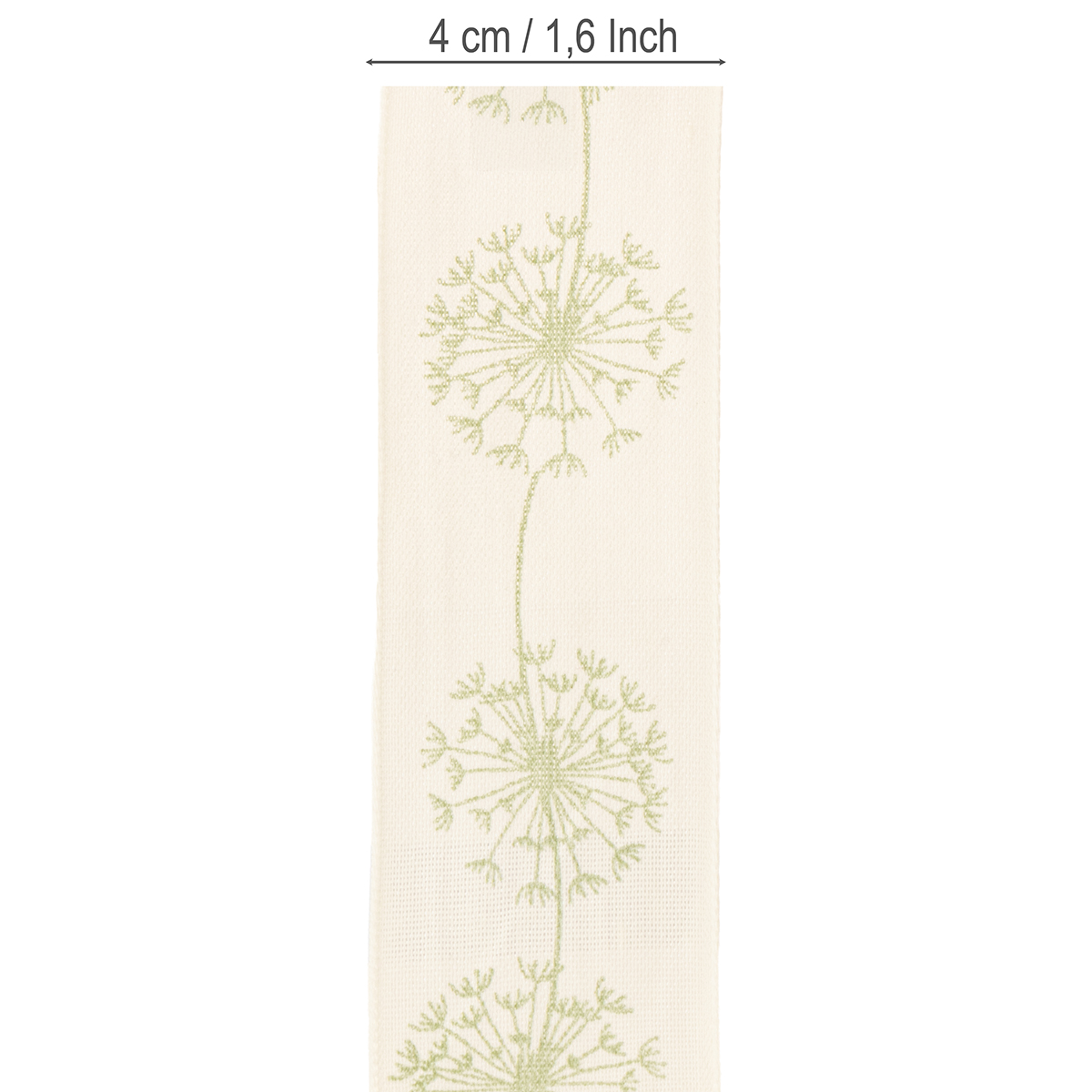 Cinta decorativa, cinta de regalo, diseño de diente de león, color crema, 40 mm, 15 m