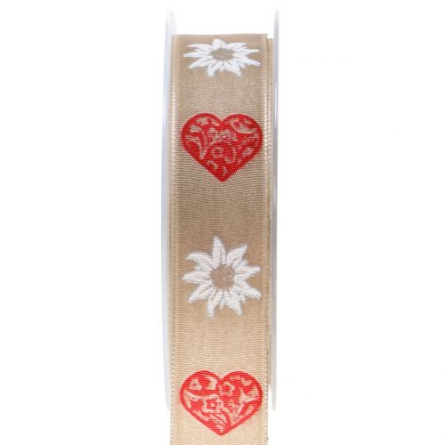La parte superior de la banda decorativa con motivos de Edelweiss en la naturaleza está hecha de 100% poliéster, mide aproximadamente 20 metros de largo y aproximadamente 25 milímetros de ancho. Tiene un borde de alambre de metal y se entrega en un práctico rollo de plástico.