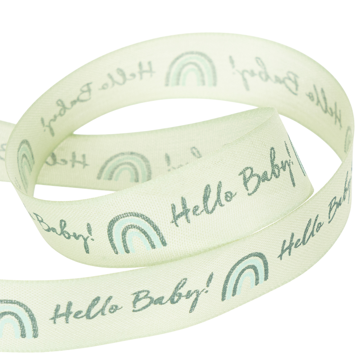 “¡Hola bebé!”, la cinta de regalo da la bienvenida a tu pequeño recién llegado. ¡La cinta decorativa verde pastel anuncia las buenas noticias con hermosas letras y es ideal para decorar, regalar y hacer manualidades!