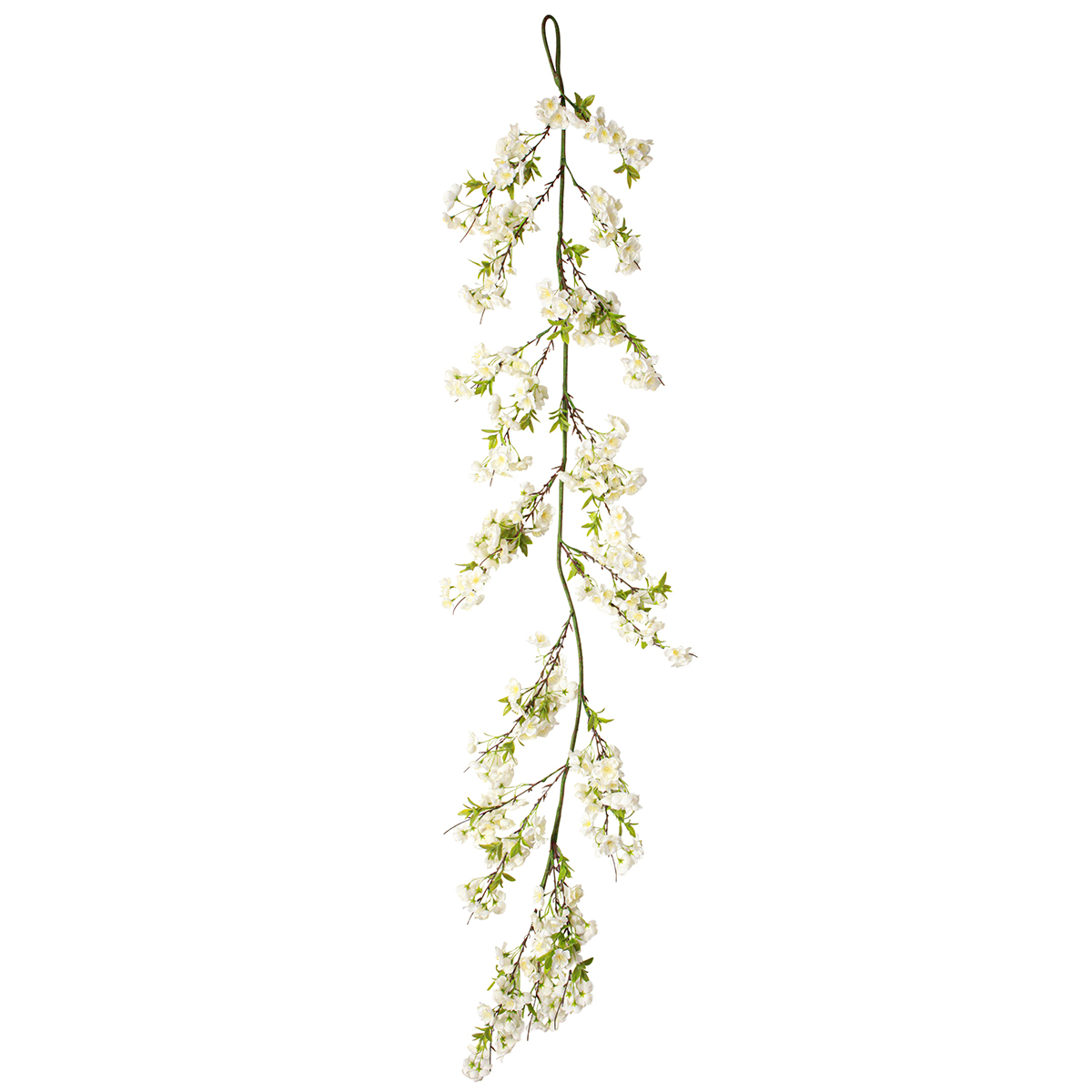 Colgador decorativo guirnalda de flores artificiales de cerezo blanco 170 cm