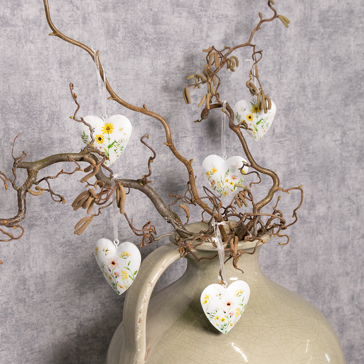 ¿Qué te parece una decoración de pared que aporte calidez, encanto y un toque romántico a tu hogar? Nuestros colgantes de corazón con motivos florales se integran a la perfección en cualquier espacio y crean un ambiente maravillosamente acogedor. ¿Te encanta el estilo natural y quieres darle a tu hogar un toque especial? Entonces te encantarán estos colgantes de corazón. Los delicados motivos florales no solo son hermosos, sino que también crean una alegre armonía entre el romanticismo y el estilo rústico. Ya sea como un punto focal en el salón, un toque acogedor en la entrada o un detalle encantador en una maceta, estos colgantes son el detalle perfecto para completar tu estilo decorativo. Su superficie metálica blanca y ligeramente brillante aporta a cualquier estancia un toque moderno y atemporal. ¿Y lo mejor? ¡Recibirás seis de estos colgantes de corazón diseñados con cariño, que puedes combinar a tu gusto!